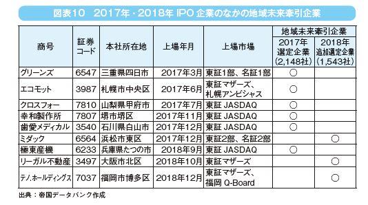 これら地域未来牽引企業のうち、2017年に6社、2018年には3社がIPOを果たしている(図表10)。
